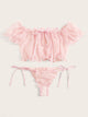Lettuce Trim Dobby Mesh Tie Side Lingerie Set