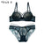 New Top Sexy Underwear Push up Bra Set Cotton Brassiere Deep V Black Lace Bra and Panty Sets Embroidery Women Lingerie Set Green