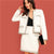 2pc White Office Lady Elegant Open Front Long Sleeve Jacket And Pocket Skirt