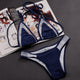 This sexy bikini set makes a stylish statement whenever you wear. The halterneck style, sheer mesh inserts and self-tie string fastening design will perfectly shows your charming figure and curves. Come and get this wonderful gift for yourself.
